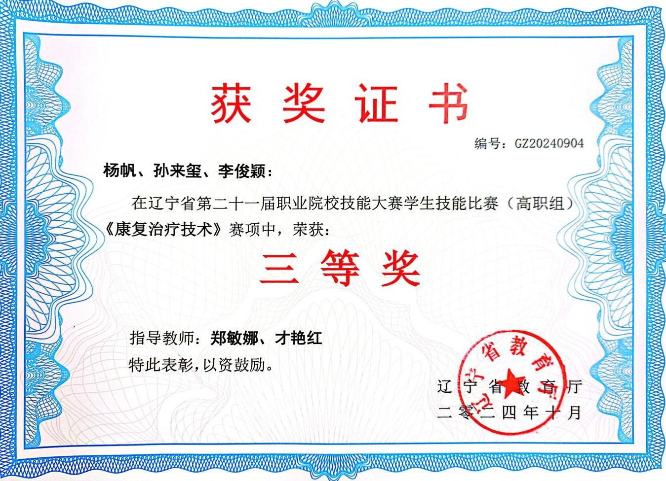 八、beat365唯一官方网站校学生技能比赛(高职组)康复治疗技术技能大赛三等奖1项