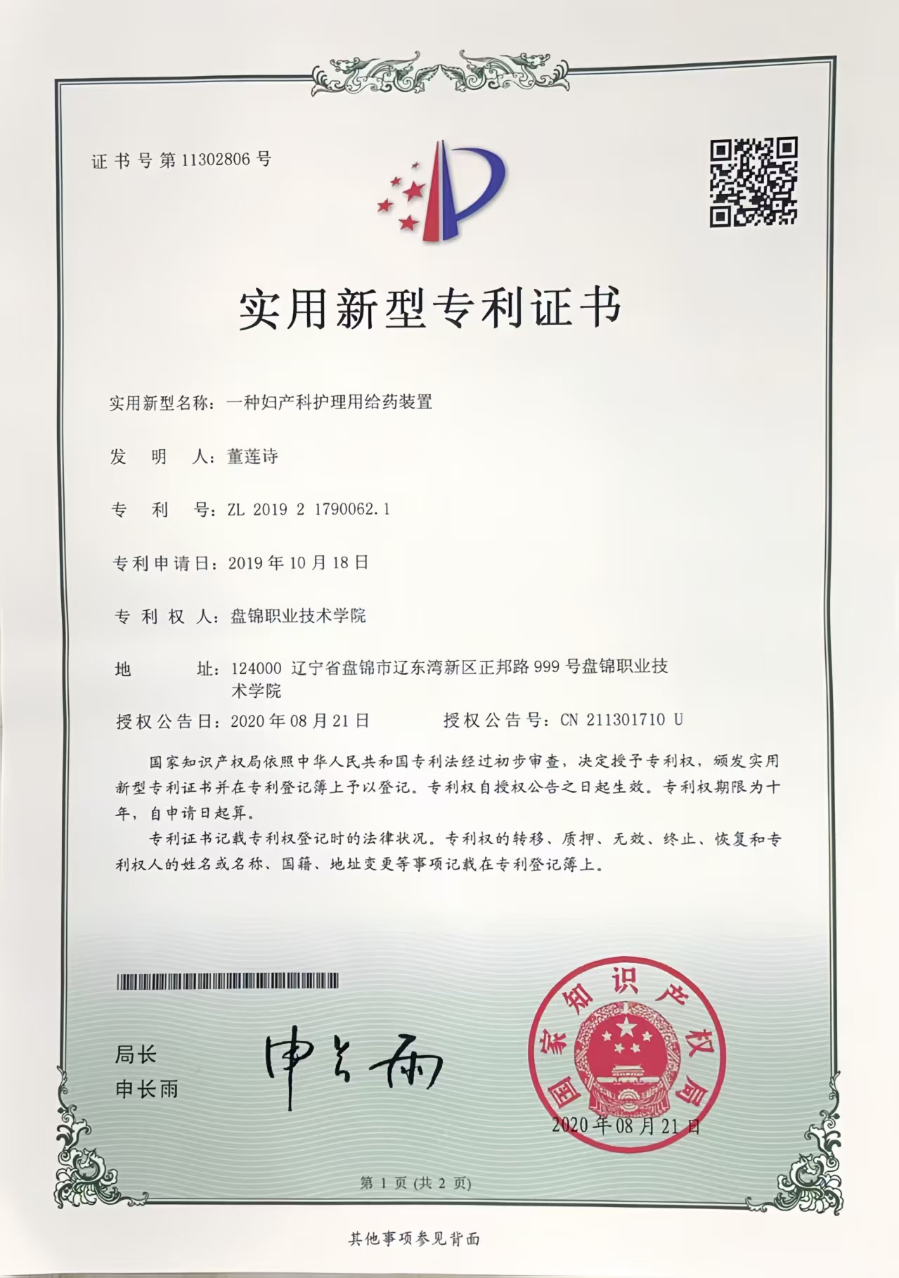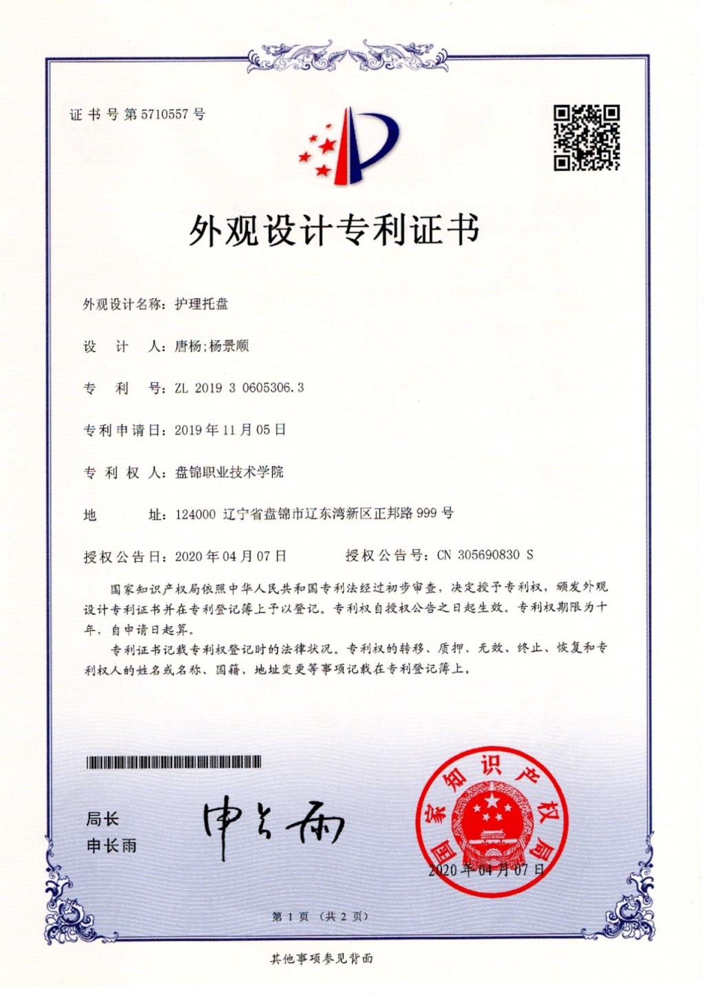二、外观设计专利1项。