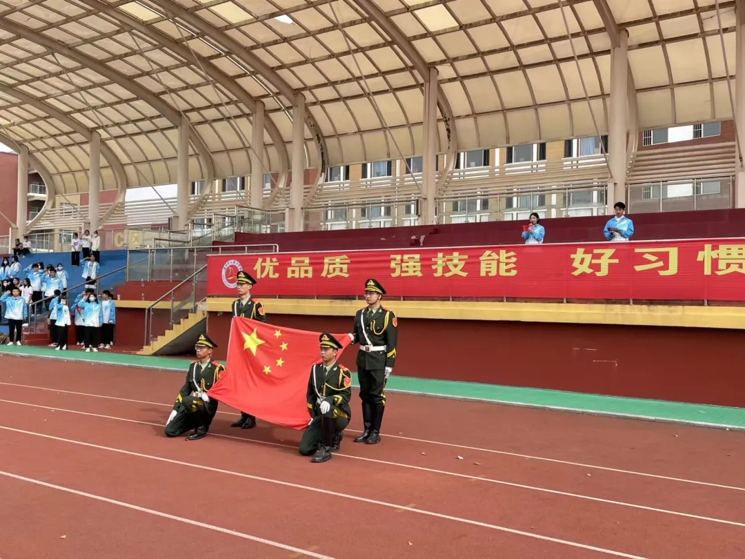 10月1日13时在操场举行了红色传承开幕仪式。伴随着主持人激情昂扬的开幕词,活动正式开始。由4名红色接力传承者依次传递五星红旗,传至4位国旗护卫队成员,踏正步走至主席台下,展开国旗。在场所有成员向国旗敬礼,以表达新时代大学生对祖国的热爱与致敬。