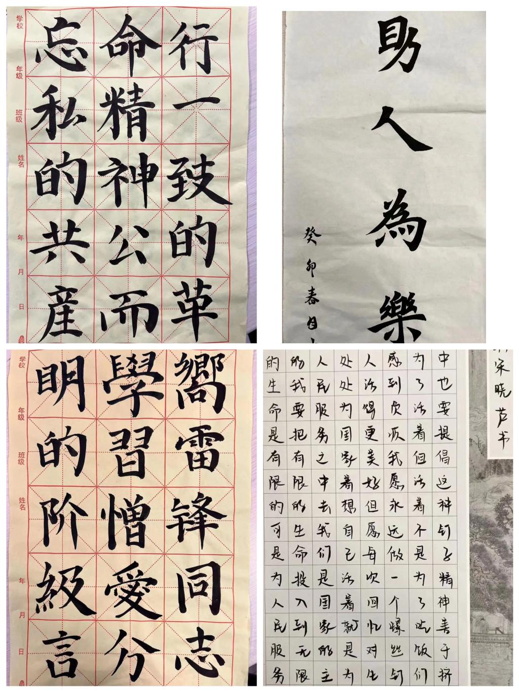 “古墨轻磨满几香,砚池新浴灿生光”。本次比赛不仅有精美的绘画作品,还有书法作品。同学们的书法或苍劲有力,或温润如玉,或行云流水,或端庄秀逸,他们用书法谱写了对雷锋精神无限的敬意。
