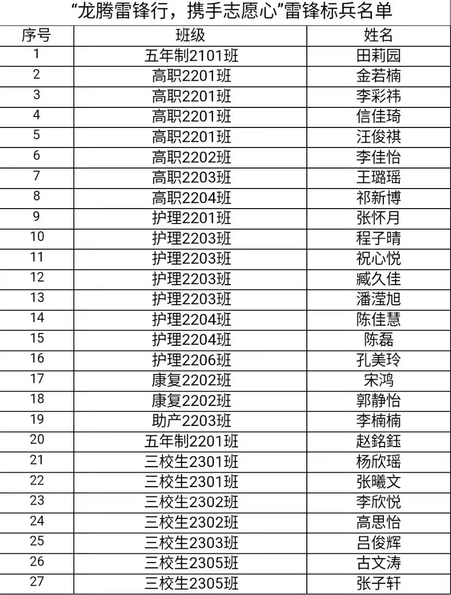 beat365唯一官方网站领导以及辅导员老师秉承着公平、公正、公开的原则,本着以一个人带动一群人,持续推动学雷锋活动蔚然成风的想法。最终评选出以下27名雷锋标兵。