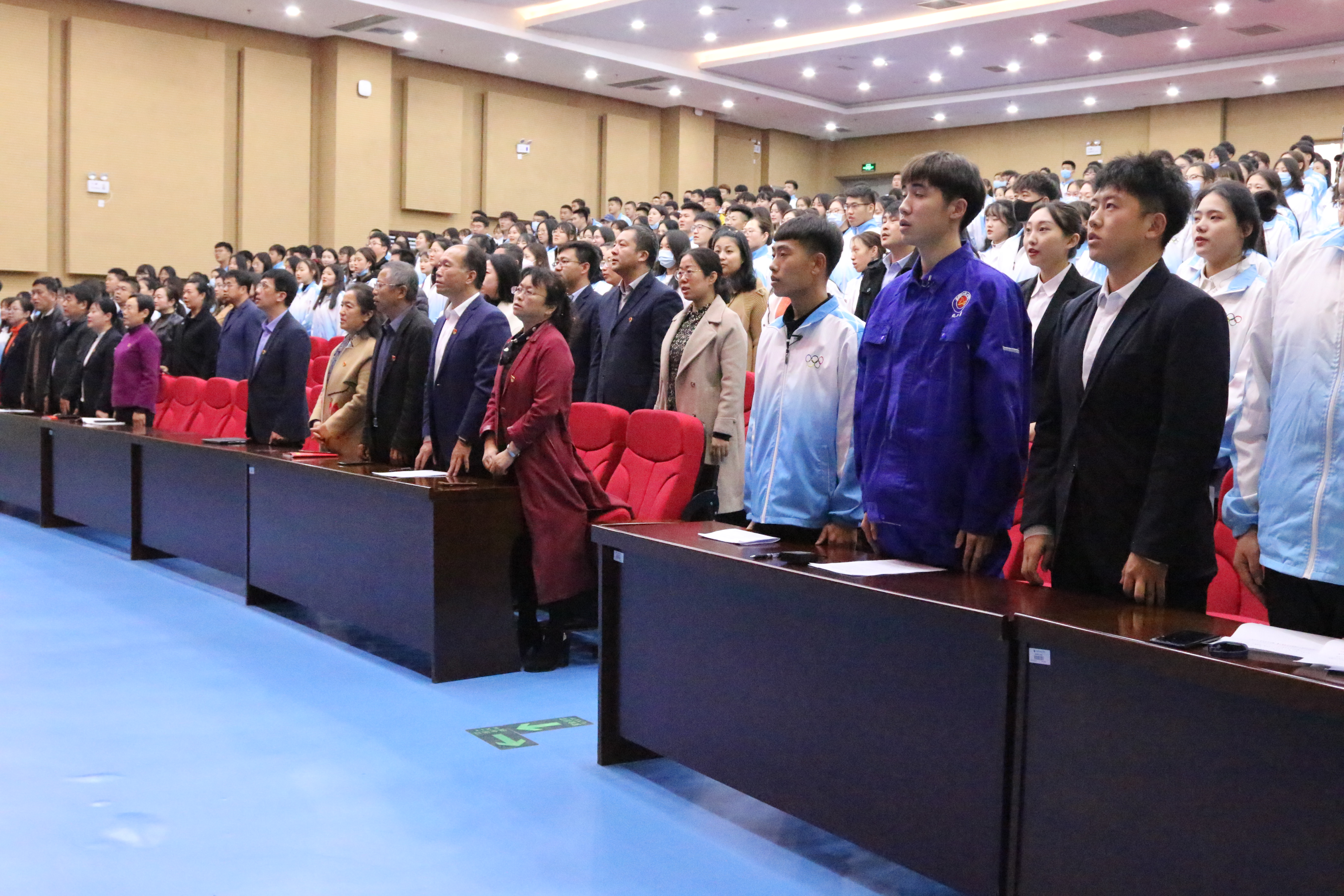 大会第一项,全体起立,齐唱中华人民共和国国歌。