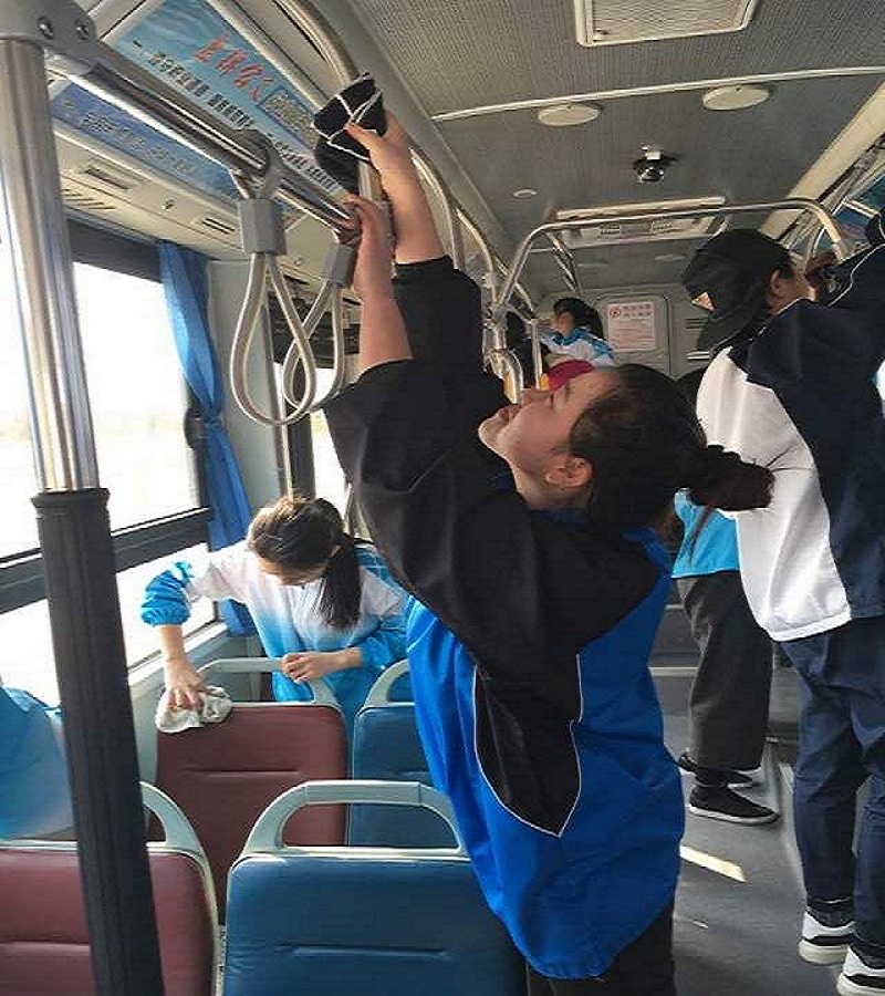 下午2:30左右,同学们进行了收尾工作,再一次检查车内的卫生是否合格,体现出了护理人严谨的工作态度。最后,我们同崭新的公交车进行了合影,心里美滋滋的!