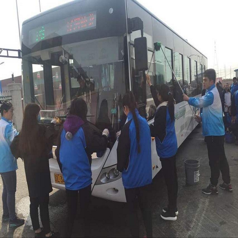 随着陈书记宣布活动的开始,同学们自动六七个人为一组,各自有各自的分工,女生负责擦洗公交车内的座位和扶手,男生负责擦洗公交车外的玻璃和车身,整个活动过程井然有序。虽然天气状况不是太好,大风天气,但志愿者们的干劲十足,小护士们没有表现娇气,而是不畏艰辛,勤勤恳恳,体现了全心全意为人民服务的态度,弘扬了雷锋精神,很好的展现了当代大学生的精神风貌。