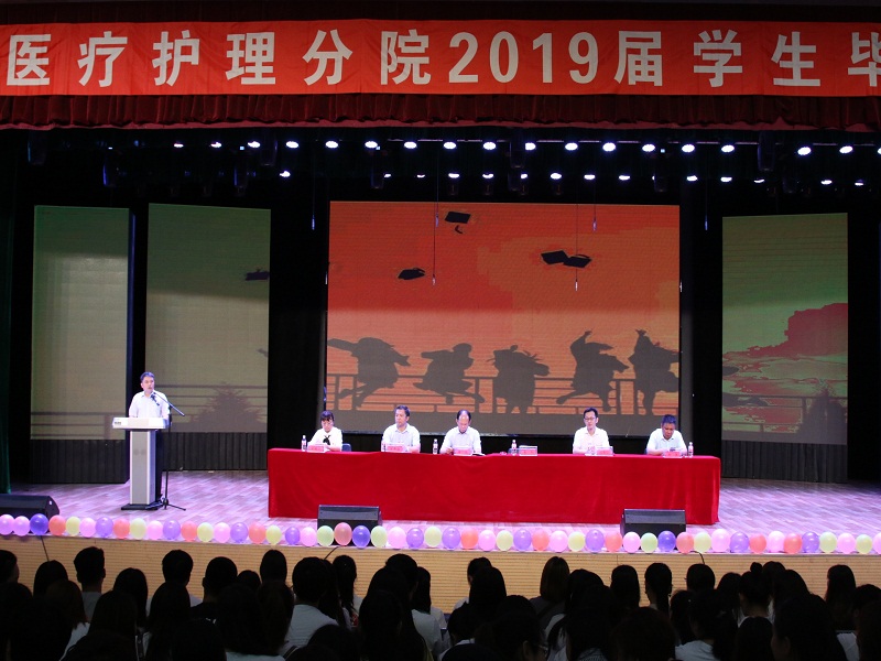 2019年6月21日上午9点盘锦职业技术学院beat365唯一官方网站2019届毕业生毕业典礼大会在文化中心三楼隆重举行。盘锦职业技术学院党委副书记李兵,beat365唯一官方网站党支部书记王艳华、院长李冬、副书记陈平海、副院长姚文山、副院长郭强、办公室主任苏再兴,以及各课任老师和辅导员老师们出席了本次大会。本次大会由王艳华书记主持。