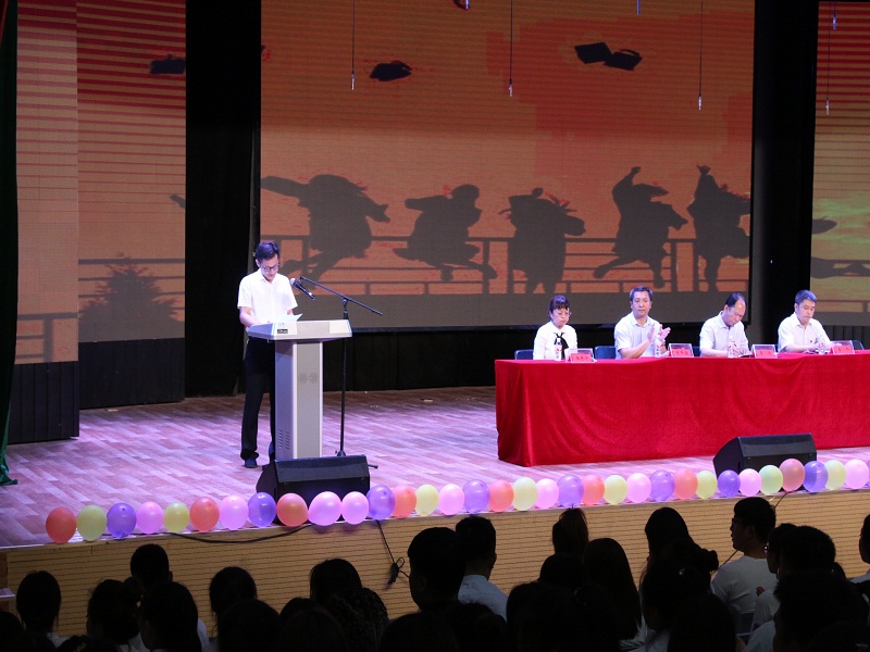 学院党委李兵副书记致词。李书记对同学们的未来提出了殷切希望:1、要饮水思源,懂得感恩。要感恩祖国,感恩社会,祖国永远是我们坚强的后盾。感恩父母感恩家人,是父母含辛茹苦将你们养大。感恩母校,没有老师们的教诲就不会有我们今天的知识修养。感恩同学和朋友,是他们与你们风雨兼程、一路同行。2、志存高远,勇于担当。自觉为社会奉献自己的青春、热血和汗水是大家应有的担当,在祖国和人民最需要的地方大显身手。3、摆正心态,脚踏实地。从小事做起,为自己的梦想和人生目标百折不挠,不懈奋斗。4、善于合作,共赢发展,与不同的人合作和睦相处、互帮互助!