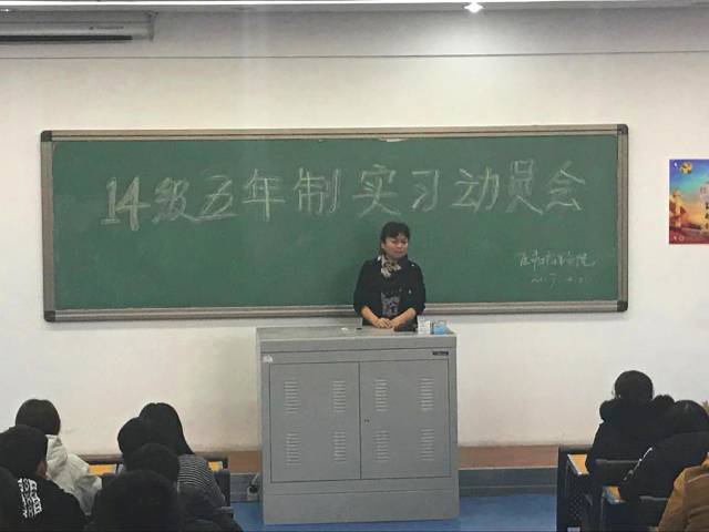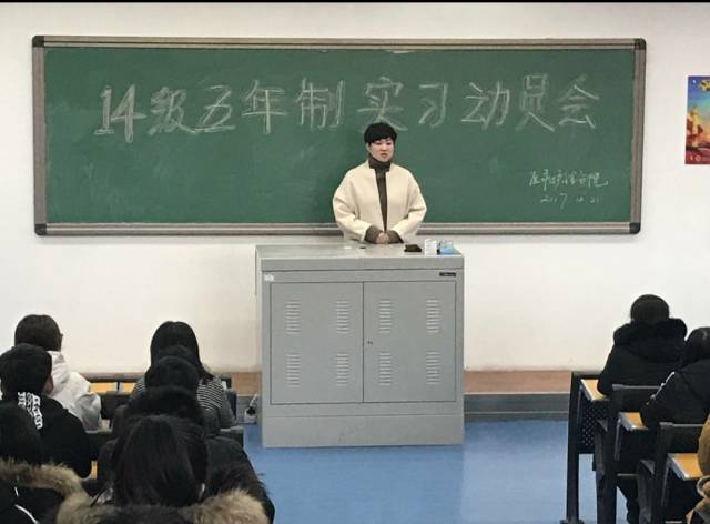 2017年12月21日下午3:30,医疗护理学院14级五年制动员会在博爱楼307教室举行。医疗护理学院院长李冬、副院长姚文山、党支部书记王艳华、副书记陈平海、辅导员和全体14级五年制学生参加了此次活动。除此以外,医疗护理学院特邀盘锦市人民医院护理部主任迟冰媛。