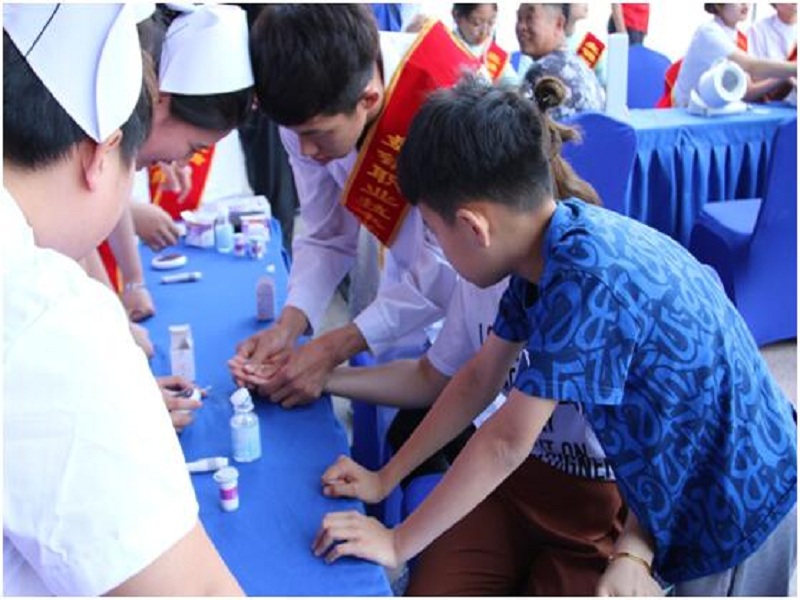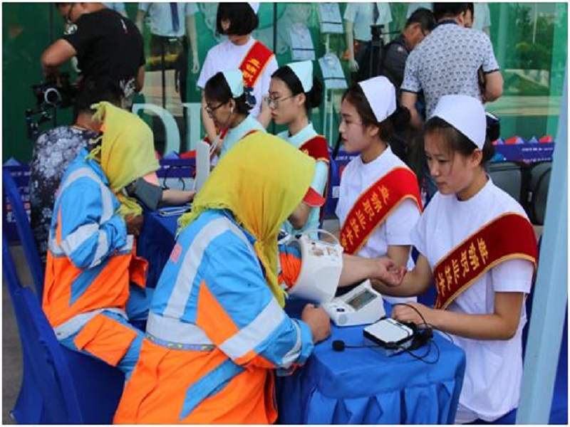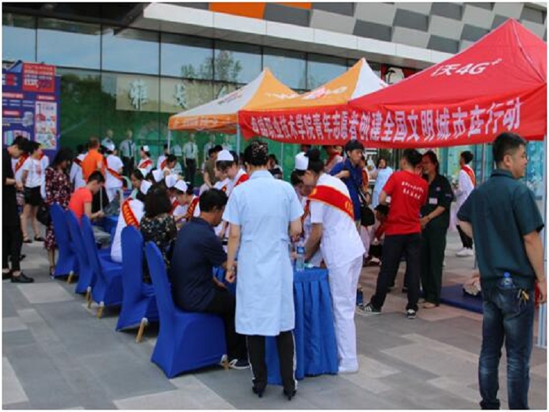 青年志愿者和老师们免费为过往市民测量血压、血糖,发放健康宣传资料。广泛传播健康保健知识,向过往居民讲解如何防预和治疗常见疾病,并根据居民所患病症提供医疗咨询,积极开展健康教育活动,受到广大群众的欢迎和认可。
