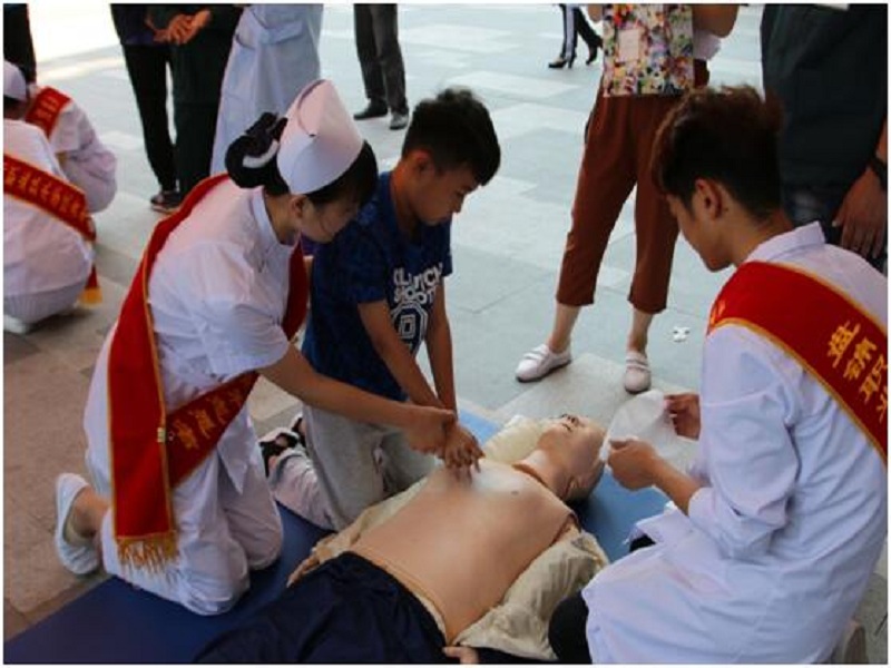 同时,青年志愿者和老师们还利用我院先进的模拟器材为现场群众讲解心肺复苏知识,通过先讲解,后实践的教学模式,使许多市民成功学会了心肺复苏急救知识。另外,我们还发放了创建文明城市资料,积极宣传我市文明城市创建工作。