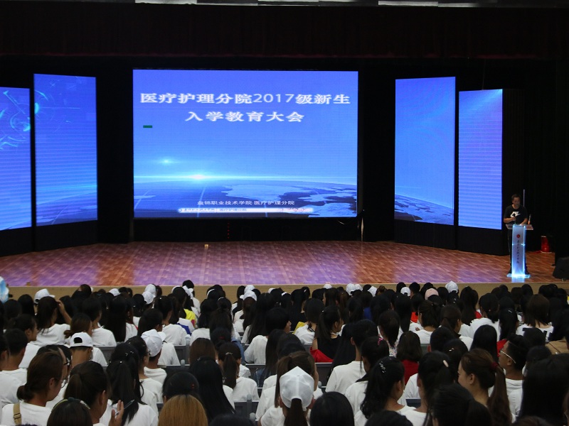 金秋时节,医疗护理学院迎来了充满活力的2017级新生。为帮助新生更快了解分院历史,熟悉分院情况,增强对护理专业前景的认知,9月6日晚6点半,医护学院在文化中心举办了2017级新生入学教育大会,大会由副书记陈平海主持。医护分院院长李冬,党支部书记王艳华,辅导员高德朋、刘方方、于萍、王聪及全体新生参加了此次活动。
