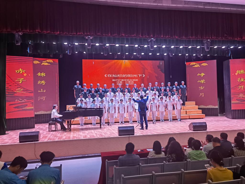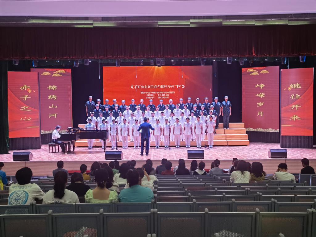 一个人对祖国的爱从来都不是抽象的,唱响祖国赞歌,我们倍感骄傲。百年传承,歌曲中的百年芳华令人动容。生逢其时,不负年少,今后医护学子必当紧随红色旗帜的感召,坚定不移跟党走,砥砺奋进新征程!