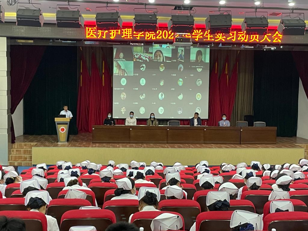 大会第一项,副院长白柳介绍实习的总体目标、实习岗位要求和校内实习管理工作。白柳副院长叮嘱同学们要遵守学校及实习医院的规章制度,明确自己应在带教老师的督导下,严格按照护理操作规程为病人实施护理,尊敬老师,虚心学习、并服从老师的安排。遵守职业操守,保持良好的护士修养,秉承严谨的工作作风,为今后的就业之路奠定坚实的基础。