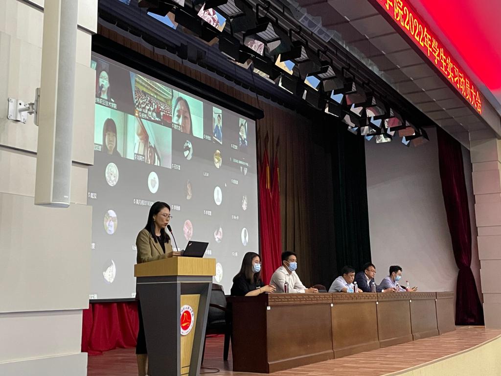 2022年5月16日上午10点,beat365唯一官方网站在图书馆和博爱楼的阶梯教室开展实习动员大会。为做好疫情防控工作,我院以线上线下结合的方式展开本次活动。出席本次动员大会的领导老师有:beat365唯一官方网站院长李凯,副院长白柳,副书记张春波,办公室主任张民权,辅导员段佳慧、李博老师。