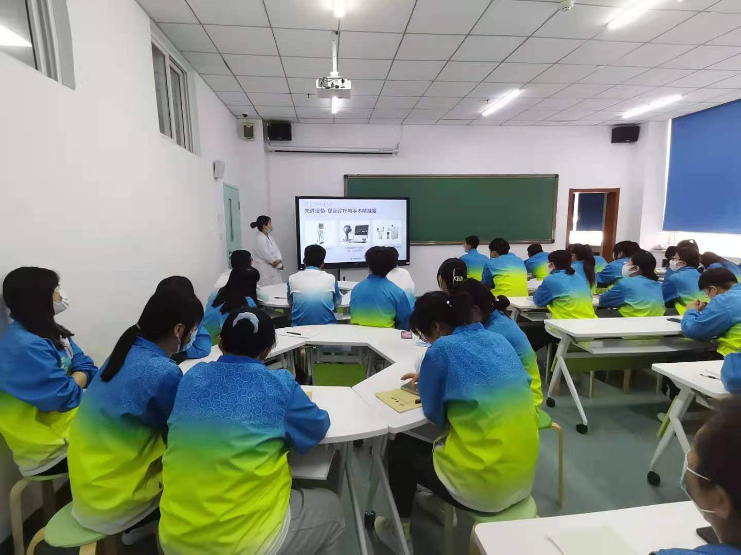 在讲座的互动环节,同学们针对医院的人员培养、薪资福利待遇以及眼科护理等等相关问题与杨主任进行交流探讨,进一步增强了学生对眼科专业的了解,增进了学生对自身专业的认知、认可程度,同时认清就业、创业新形势,转变就业观念,能够在未来理性面对就业和创业。